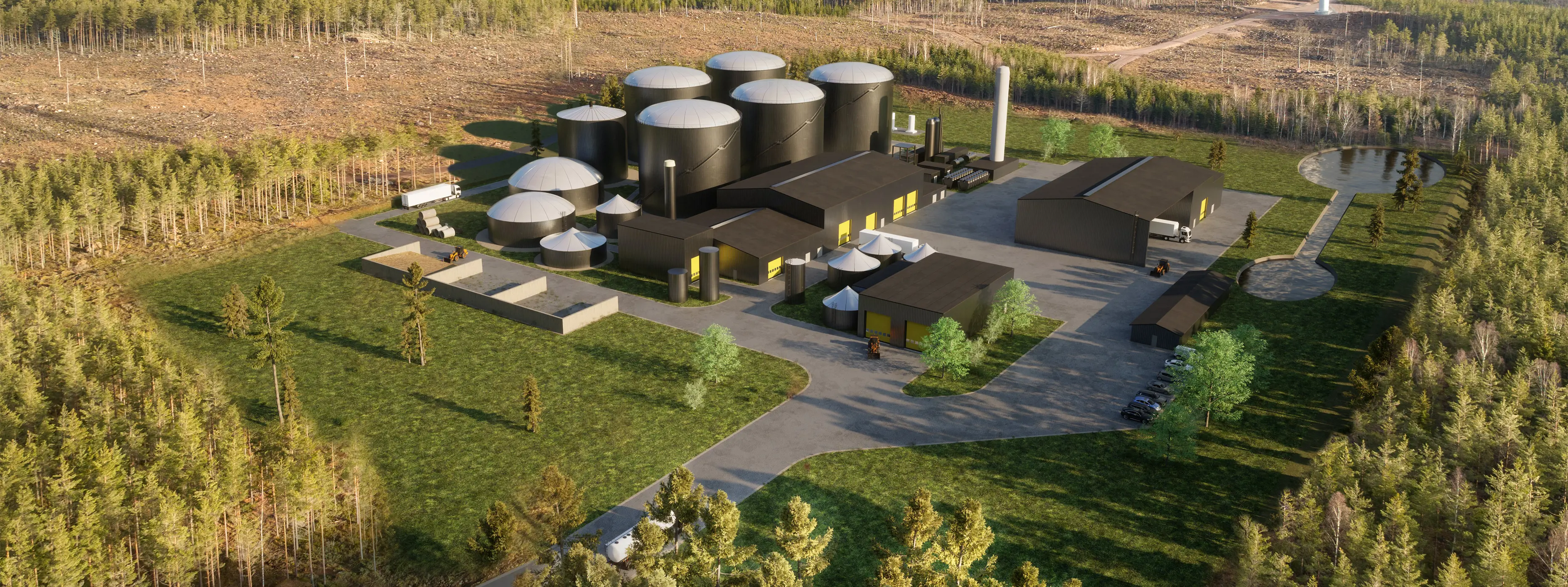 Bild: Renderingsbild från biogasanläggningen i Mönsterås, St1Biokraft